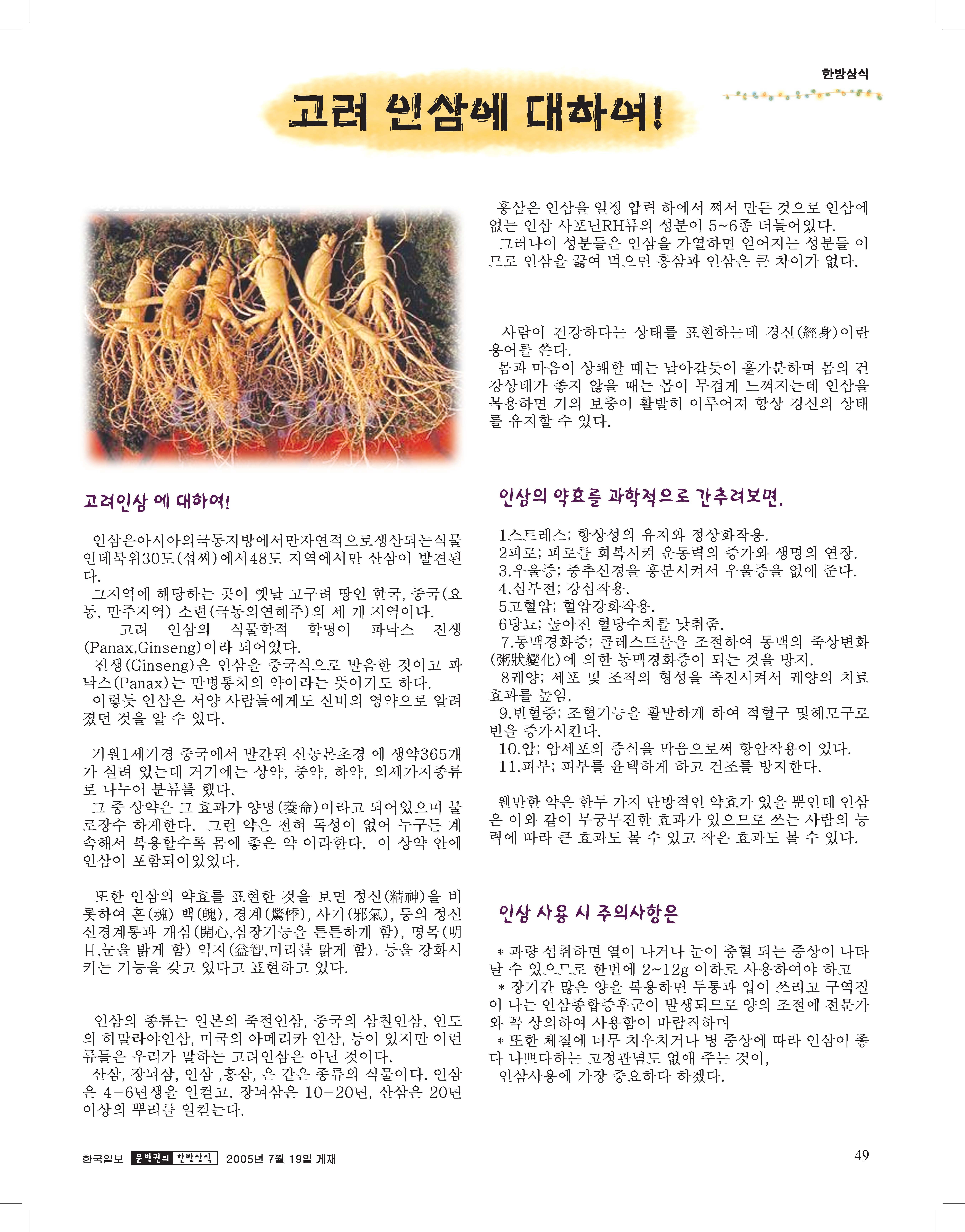 고려인삼에 대해서